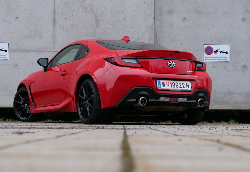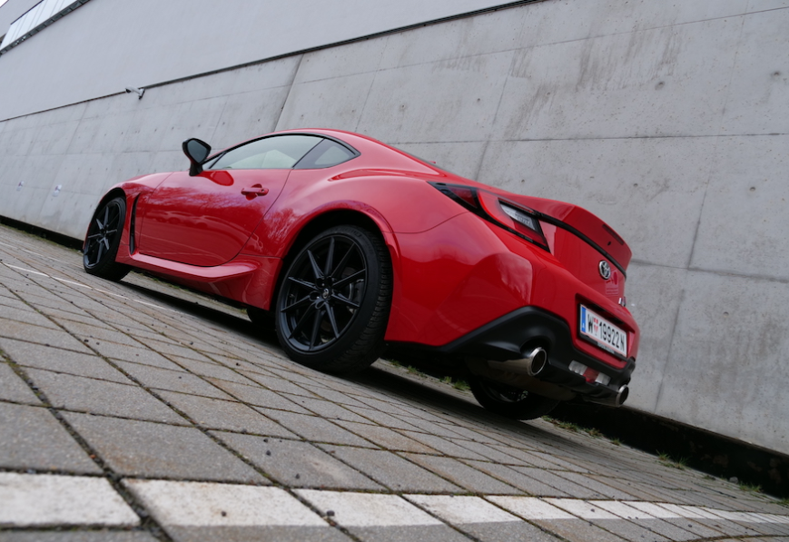 Unglaublich, was 0,4 Liter ausmachen können. Um eben die wuchs der Brennraum des Vierzylinder-Boxer-Saugmotors an. Und ja, das reicht, um ihn tatsächlich adäquat antreten zu lassen. Klar: Mit 235 PS bei 7.000 U/min, 250 Newtonmeter und einer Zeit von null bis 100 km/h in 6,3 Sekunden (7,6 waren es noch beim GT86) avanciert auch der GR86 nicht zum Supersportler. Aber das macht nichts. Er bietet nämlich etwas viel Besseres als schnöden Speed: Fahrspaß diesseits der Grenzen der Straßenverkehrsordnung, leistbare Performance für dich und mich und all das, was Sportwagen großartig gemacht hat, bevor ihre Bordcomputer mehr Rechenpower als eine aktuelle Spielekonsole hatten. Er lässt uns mit verschwitzten Händen und bis zum Hals pochendem Herz unsere Ferserl-Technik beim Runterschalten vor einer engen Kehre verbessern und uns den Kurvenausgang in Folge durchs Seitenfenster anpeilen. Und das wohlgemerkt in Geschwindigkeitsbereichen, in denen die Herren in Dunkelblau einen zwar auch ein bisserl schimpfen und was zahlen lassen, aber nicht gleich für immer und ewig wegsperren.