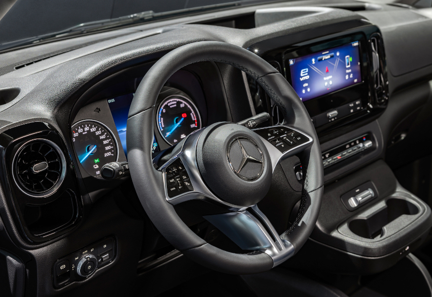 Technisch hingegen darf man sich beim Vito Tourer sowie den eVito Tourer schon in der Basis über LED-Scheinwerfer und eine neue E-Heckklappe freuen. Sie lässt sich entweder über eine Taste auf dem Fahrzeugschlüssel oder den Entriegelungsgriff an der Heckklappe elektrisch öffnen, schließen und in jeder Position anhalten. Um die Gefahr von Beschädigungen zu verringern, verfügt die Heckklappe über eine automatische Hinderniserkennung und eine individuell einstellbare Öffnungsbegrenzung. Zudem ist für alle gewerblichen Modelle mit Automatikgetriebe ausstattungsabhängig die elektrische Parkbremse an Bord.