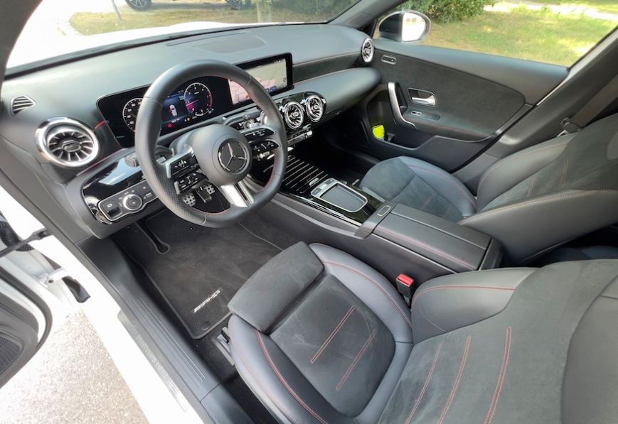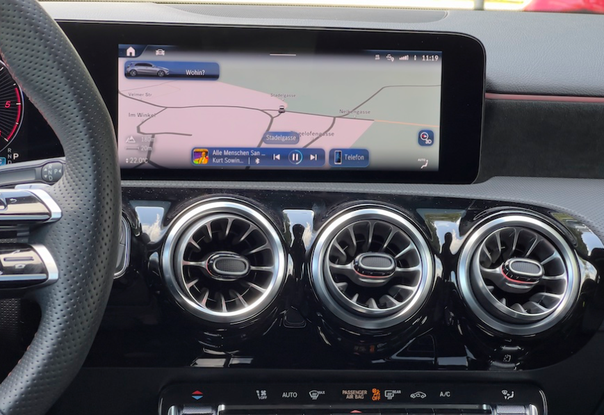 So verfügen alle Benziner nun über ein Mild-Hybrid-System mit 14 Extra-PS (auch die zwei AMG), ja und gedieselt wird nun nicht mehr mit französischer Technik. Statt des uralten Zweiventil-1500ers, den man bei Renault über Jahrzehnte überall (und bei Mercedes fast überall) eingebaut hat, steckt nun der Daimler-Standard-Zweiliter unter der Haube, der diese A-Klasse zur wohl harmonischsten aller Zeiten macht. Von den drei Leistungstufen (116, 150 und 190 PS) ist der von uns gefahrene 180 d zwar die schwächste, im Alltag aber ein souveräner Begleiter, der mit knapp fünf Litern Sprit auskommt, genügend Punch für Überholmanöver und Kurvengeräuber bietet und dennoch weitgehend verschweigt, dass hier noch selbstgezündet wird. Die mindestens 1.500 gesparten Euros im Vergleich zu den starken Varianten kann man sogar noch toppen, indem man sich für die nur für den 180 d erhältliche Österreich-Edition entscheidet. Die kostet dann „nur“ 36.990 Euro, bietet dafür aber von Rückfahrkamera bis Klimaautomatik alles, was man braucht. Der große Rest aber ist – typisch schwäbisch – dann gegen Aufpreis erhältlich.