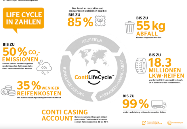 Ist das Profil dann doch einmal komplett heruntergefahren, ist das noch lang nicht das Ende. Denn auch wenn diese Lösung oft noch einen schlechten Ruf genießt, als weiteres Modul kommt eine professionelle Rundumerneuerung ins Spiel. Benack: „Im Rahmen unseres ContiCasingManagements nehmen wir Karkassen zurück und geben ihnen mit unseren Premium-Runderneuerungslösungen ContiRe und ContiTread ein neues Leben. Und wenn es wirk- lich einmal vorbei sein sollte mit den altbewährten Pneus? Kann immer noch recycelt werden, um Rohstoffe in in der Produktion neuer Rundlinge einzusetzen. •