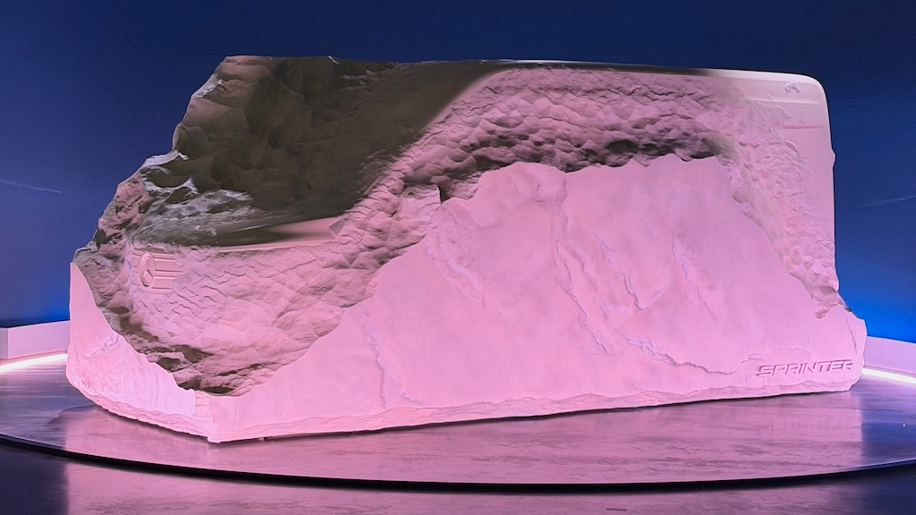 So zimmerte man für das große Jubiläum nicht nur in Handarbeit den allerersten Transporter der Firmengeschichte quasi aus dem Nichts zusammen. Auch meißelte man aus massivem Stein erste Design-Clous der neuen Sprinter-Generation und ließ auch ein paar Details aus. So gibt es nicht nur diverse Höhen und Längen, Diesel und Elektro. Die zivilen Busversionen werden auch optisch einen eigenständigen Aufbau bekommen. Die echten Nutzfahrzeuge gehen dafür noch mehr Richtung Vierkantbau, um den Nutzwert so hoch wie möglich auszulegen. Keine schlechte Idee, wenn man bedenkt, dass die geschäftlich genutzten Varianten gut 80 Prozent der Sprinterverkäufe ausmachen.