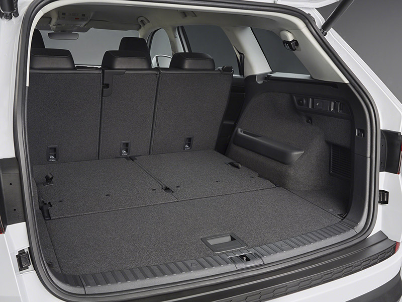 Ein Novum bei den Tschechen: Optional kann der Kodiaq als erstes Modell von Skoda mit einer dritten Sitzbank geordert werden. Sie versteckt sich bei Nichtgebrauch im Kofferraumboden und lässt sich mit einem Handgriff aufstellen. Apropos Kofferraum: Als Fünfsitzer passen 720 Liter rein – ein sagenhafter Wert. Legt man die zweite Sitzreihe um, sind es gigantische 2.065 Liter.