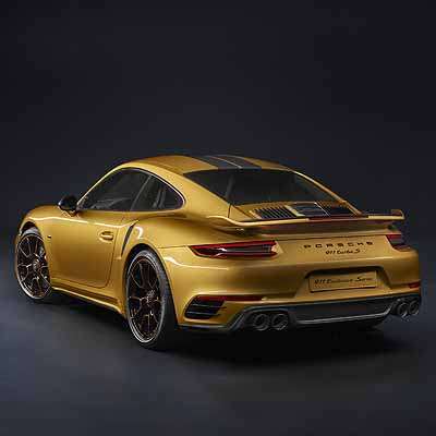 Neben 27 PS mehr Leistung unterscheidet sich der 911 Turbo S Exclusive Series vom serienmäßigen 911 Turbo S durch ein eigenständiges Design, noch edlere Materialien und extravagante Detaillösungen. Der Sportwagen wird in der neuen Porsche Exclusive Manufaktur am Stammwerk in Zuffenhausen in aufwendiger Handarbeit veredelt. Viele Bauteile aus Carbon und die exklusive Lackierung in Goldgelbmetallic machen die 911 Turbo S Exclusive Series unverwechselbar.