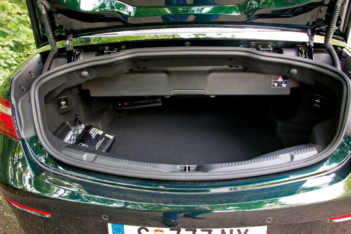 Auch von der Jahreszeit abgesehen, bestehen die Erbauer aus Stuttgart darauf, ein besonders alltagstaugliches Cabrio geschaffen zu haben. So kann der 310 beziehungsweise bei geschlossenem Verdeck 385 Liter fassende Gepäckraum des 4,83 Meter langen Zweitürers durch umlegbare hintere Sitzlehnen nach vorn erweitert werden, sodass man vermutlich sogar ein paar Carving-Ski einfädeln könnte. Ebenfalls mit allen Anforderungen spielend fertig wird die Motorisierung unseres Testwagens, welche dieselbe Souveränität an den Tag legt, mit der die Zielgruppe des Schlittens Finanzgeschäfte tätigt. Als smoother Assistent werkt die 9G-Tronic-Wandlerautomatik, die in Sachen unbemerkt perfekter Dienstbeflissenheit nach wie vor am Markt keine Konkurrenz kennt. Die schöne Farbe des Vehikels auf den Bildern heißt übrigens "smaragdgrün metallic" - merken und ankreuzen! Das tiefdunkle Grün wirkt im Schatten fast schwarz, kommt erst bei richtigem Licht zur Geltung und ist so dezent, dass manches "british racing green" dagegen mit der Brachialität von 1980er-Jahre-Frisuren aufs Auge einwirkt. Die 20-Zöller des AMG-Exterior-Pakets fügen sich in dieses Understatement nahtlos ein und haben noch eine Zusatzfunktion: Bei Unebenheiten erinnern sie den Fahrer, die Dynamikvorwahl auf "Comfort" zu stellen.