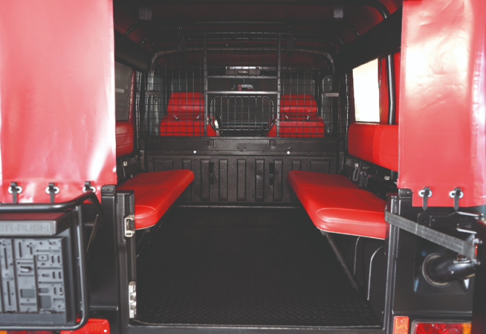 Neben Mattlack und bunten Planen glänzen die Geländewagen mit LED-Arbeitsscheinwerfern in den Stoßfängern und einer modernen Seilwinde. "Mit einem G, egal welchen Alters, muss man jederzeit durch dick und dünn gehen können", meint Geschäftsführer Marcus Lorinser. Das abgebildete Modell wird in Deutschland um 39.500 Euro verkauft und weist bei Baujahr 1993 einen Kilometerstand von 117.000 Kilometern auf. Für den Antrieb sorgt ein 116 PS starker Benziner, der an eine Automatik gekoppelt ist. Kontakt unter