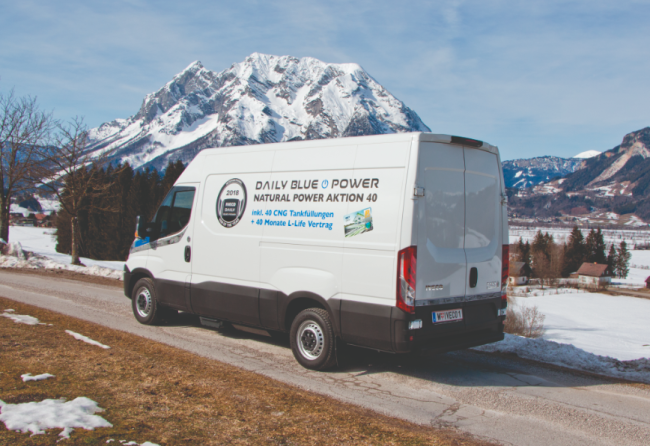 Das Netz an Erdgastankstellen ist mitüber 170 Standorten in Österreich sehr gut, bis auf wenige weiße Flecken stellt die Infrastruktur also kein Problem dar. Und wenn gerade keine Möglichkeit zum CNG-Zapfen besteht, hilft ein 14 Liter großer Benzin-Nottank zur Überbrückung weiter. Die Fahrleistungen können sich sehen lassen, der Dreiliter-Vierzylinder mit Turboaufladung bringt es auf 136 PS und ein Drehmoment von 350 Newtonmetern, damit geht dem Daily auch im beladenen Zustand (Nutzlast je nach Variante zwischen 787 und 1.062 Kilogramm) nicht so schnell die Puste aus. Ein Achtgang-Automatikgetriebe sorgt für besonders komfortables Fahren, die weichen und schnellen Gangwechsel stehen denen eines Pkw um nichts nach. Wir waren rund 700, vorwiegend auf der Autobahn gefahrene Kilometer unterwegs, der Durchschnittsverbrauch lag bei ziemlich genau zehn Kilogramm CNG auf 100 Kilometer. Die Preise pro Kilogramm liegen aktuell bei rund 1,10 Euro, jene von Diesel bei circa 1,20 Euro. Kosten- und verbrauchsseitig hält sich das also in etwa die Waage, dennoch kann Erdgas punkten: Die Emissionen sind deutlich geringer (wer Biogas tankt, fährt sogar CO2-neutral), zudem fallen Dinge wie verstopfte Dieselpartikelfilter beiüberwiegend niedrigen Geschwindigkeiten weg. Zudem ist das CNG-Fahrzeug im Vergleich zum Diesel um 4,5 dBA leiser.
