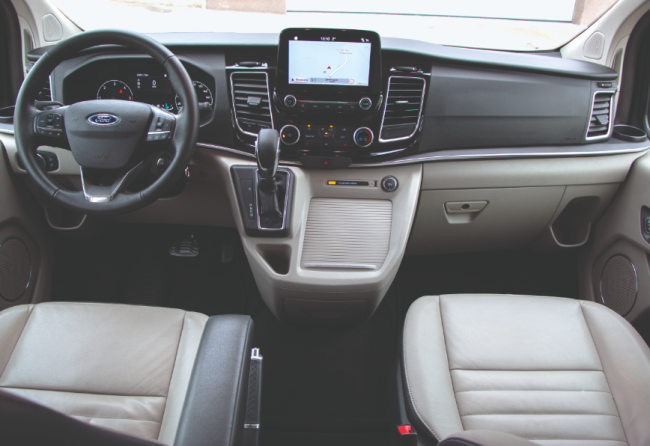 Der lange Radstand sorgt nicht nur für ein fürstliches Platzangebot, sondern ebenso für viel Komfort. Wie auch bei den Pkw- Modellen hat Ford einen gelungenen Fahrwerkkompromiss gefunden, sodass auch flott genommene Kurven kein Problem darstellen. Mit 170 PS aus zwei Liter Hubraum stand uns das stärkste Aggregat aus der Motorenpalette des Tourneo Custom zur Verfügung. Und das passt perfekt zur Pkw-Variante. Freilich kann Leistung bekanntlich nur durch noch mehr Leistung ersetzt werden, wir hatten aber nie das Gefühl, das Auto wäre untermotorisiert, im Gegenteil. In Verbindung mit dem 6-Gang-Automatikgetriebe ist für mehr als ausreichenden Vortrieb gesorgt, einzig eine Kickdown-Funktion wäre manchmal fein gewesen. Da direkt am Schalthebel mit dem Daumen ein manueller Schaltwechsel per Knopfdruck einleitbar ist, war das in Wahrheit auch kein Thema. Der Durchschnittsverbrauch pendelte sich bei 9,5 Litern ein, sparsame Naturen schafften eine Acht vor dem Komma, auf flotten Autobahnetappen konnten es auch schon mal über zehn Liter sein. Alles in allem aber tadellose Werte für ein Fahrzeug dieser Größenordnung und mit diesem Motor.