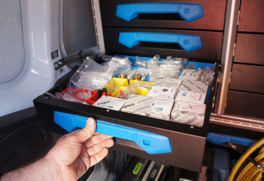 Apropos Kessel und Kesselwasser. Beides ist sperrig und hat ordentlich Gewicht - und auch wenn Fischer für XXL-Transporte einen eigenen Anhänger angeschafft hat, müssen die Installationstransportfahrzeuge geräumige Lastenträger sein. Fischer setzt bei seiner Flotte vorwiegend auf Ford Nutzfahrzeuge, neben dem standardmäßigen Transit Courier für herkömmliche Reparaturen auf den großen Transit Custom. Der Grund: Er kennt die Marke schon aus seiner Zeit als Angestellter, war damit sehr zufrieden, der nächste Händler ist auch nur ein paar Kilometer entfernt und schon hielten die Ford-Transits im Restwert-Leasing Einzug im Betrieb.