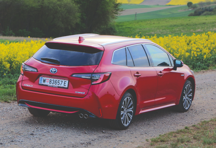 Nach zwölf Jahren hört die neue Generation des kompakten Japaners wieder auf den Namen Corolla. Das geht einher mit einer erfreulich coolen Designlinie. Unser knallroter Testwagen, ein Toyota Corolla Touring Sports Hybrid, ist ein echter Hingucker, ohne dabei zu dick aufzutragen. Die durchaus aggressiv-sportliche Front mündet in ein schönes Heck, an dem - Hybrid hin oder her - sogar ein fescher Doppelauspuff verbaut wurde. Adrette 17-Zoll-Alufelgen - es gibt optional sogar 18-Zöller -runden den Auftritt ab. Die gelungene Linienführung setzt sich erfreulicherweise auch im Innenraum fort. Tristesse war gestern, im neuen Corolla ist auch das Interieur stimmig, auch wenn die Doppelnaht als Stilelement nicht durch echte Tierhaut gestochen wurde. Aber immerhin hat man großteils auf Soft-Touch-Oberfläche gesetzt, was die Qualitätsanmutung deutlich höher ausfallen lässt.Das Platzangebot ist absolut in Ordnung, selbst im Fond des Corolla. Der Kofferraum schluckt 581-1.591 Liter, auch nicht schlecht. Einzig beim Navi oder vielmehr der Bedienung am großen Touchscreen gibt's noch Potenzial nach oben, das können andere besser.