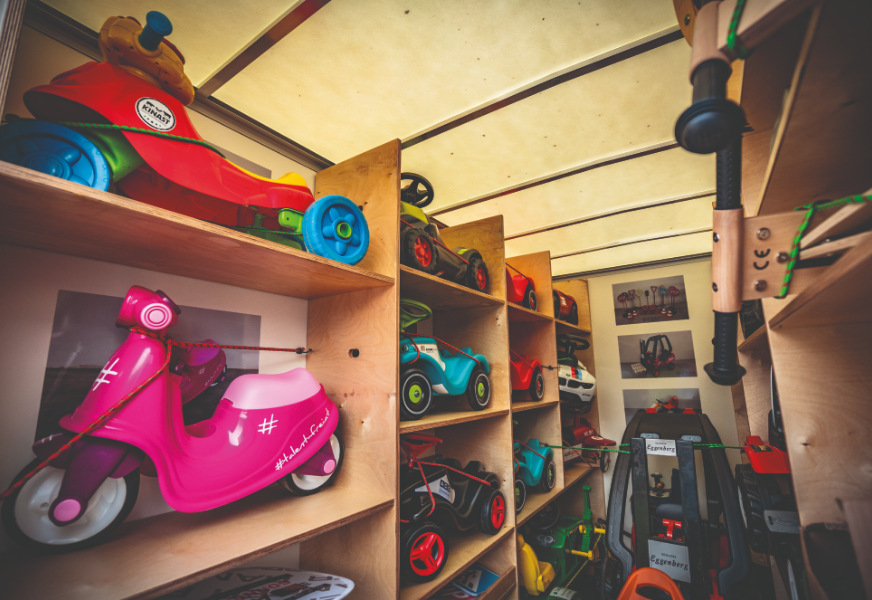 Neben der Produkt- und Einbauqualität überzeugen die Bott-Einbauten Krötzl auch optisch: "Bott baut äußerst schöne Regale, die gleichzeitig sehr praktisch sind. In Summe muss man jedoch sagen, dass die Vorteile des Systems eindeutig schon bei der anschaulichen Planung und Visualisierung der Einbauten beginnen." Ein zusätzliches spannendes Projekt von WK-Druck stellt auch das "Spielmobil" dar, eine Kooperation mit 40 Partnern, welches im Rahmen eines Sponsorings an Firmen oder Vereine zur Verfügung gestellt wird, wie Krötzl erklärt. "Hier wird von WK-Druck ein Anhänger mit Platz für 40 Bobby Cars und anderen Tretfahrzeugen zur Verfügung gestellt, der bei Events als Kinderprogramm eingesetzt wird. In Kombination mit dem 'Textilmobil' stellt das 'Spielmobil' somit eine tolle Werbemaßnahme dar."
