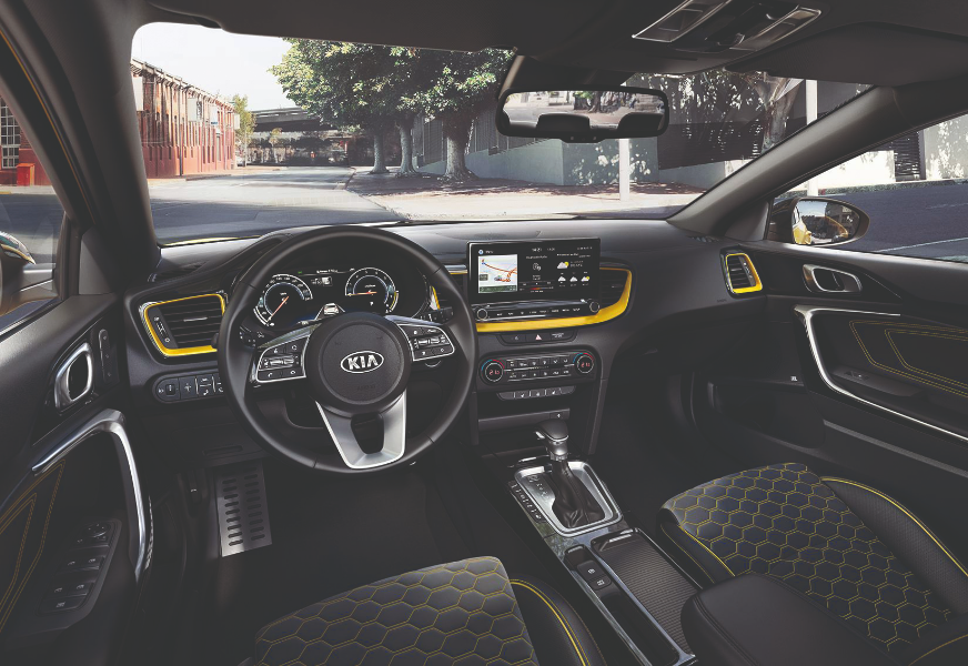 Mit seinen Ceed-Familienmitgliedern hat die Karosserie übrigens kaum etwas gemeinsam, lediglich die vorderen Türen wurden übernommen. Die in Relation lange Motorhaube vermittelt Dynamik, der Heckabschluss beinhaltet einen Kofferraum mit 426 Litern, 31 mehr als beim Fünftürer und beinahe auf SUV-Niveau. Die dreigeteilte Rückbank und der doppelte Laderaumboden erleichtern das Verstauen von sperrigerem Gepäck. Premiere im Cockpit feiert das erste volldigitale Kombiinstrument von Kia, der hochauflösende 12,3-Zoll-Monitor lässt sich individuell an die Wünsche des Fahrers anpassen.
