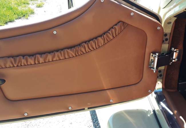 Und dann kommt der Regen, und man verzweifelt an der futzeligen Persenning, die mit ungesunden Verrenkungenüber sich und das Seitenfenster gestülpt werden muss, um die schön abgesteppten braunen Ledersitze vor der Überschwemmung zu retten.