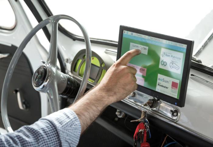 Außerdem wurde das Auto mit einem Touchscreen-Monitor und einer automatischen Lichtsteuerung versehen. Nach 150 Stunden Arbeitszeit war es geschafft, der Oldtimer ist jetzt ein reines Elektrofahrzeug. Lehrer Manuel Amor: "Der Seat 600 eignete sich hervorragend, er wiegt nicht zu viel und kommt daher mit einem kompakten Akku und einem kleinen Motor aus."