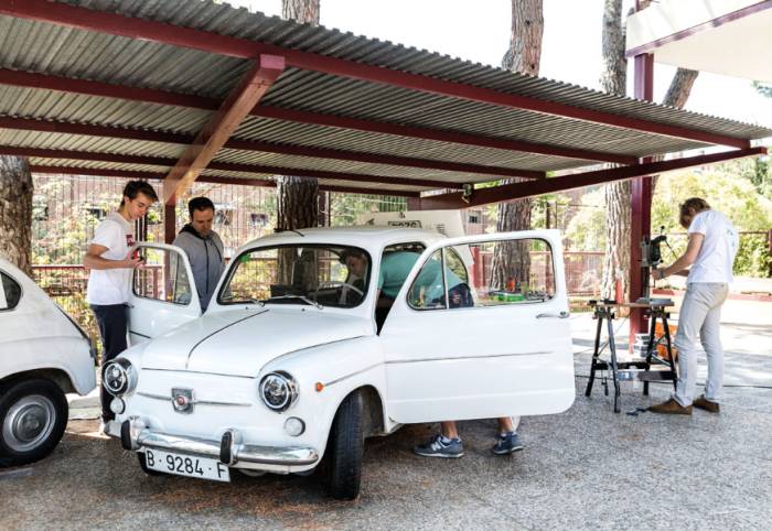 Zwölf Schüler eines Industrietechnik-Kurses der San-Patricio-Schule in Madrid durften ein ungewöhnliche Projekt als Schulübung durchführen. Als Ausgangsfahrzeug wurde ein Seat 600 verwendet, der elektrifiziert wurde.