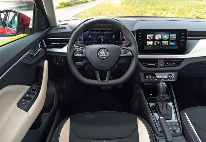 Mit 4,24 Meter Länge zwar deutlich kürzer als Karoq und Kodiaq,ist der Neue seinen größeren Geschwistern wie aus dem Gesicht geschnitten. Markig seine Formsprache, ohne extravagant zu wirken. Dieser Eindruck setzt sich im Innenraum fort. Solide Verarbeitung, gefälliges Design – nichts wirkt hier billig.
