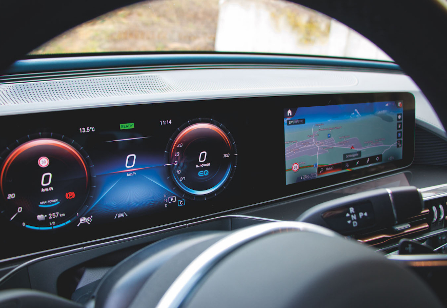 Der EQC ist also auch im Winter lade- und reichweitentechnisch ein taugliches E-Auto für Mittel- und Langstrecken. Und auch was den Komfort betrifft, steht dem nichts im Weg. Selten sind wir in einem derart gut gedämmten Fahrzeug gefahren. Außer Windgeräuschen bei Autobahntempo und einem leisen Knarzen aus dem Armaturenbrett bei starker Verschränkung hört man hier keinen Mucks. Interessant ist übrigens auch die Anzeige auf dem Instrumentendisplay, die Aufschluss über den Kraftaufwand des 460 PS starken EQC gibt. So erfährt man unter anderem, dass er auf ebener Bahn bei Tempo 50 gerade mal ein Prozent seiner Gesamtleistung aufwendet. Und wen es interessiert: Bei 130 km/h sind es auch nur 15 Prozent.