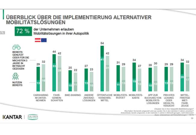 Bereits seit 18 Jahren veröffentlicht das Arval Mobility Observatory jährlich das Fleet Barometer, eine europaweite Studie zu Trends in Fuhrparks und Mobilität. 2020 ist erstmals Österreich mit Ergebnissen vertreten, insgesamt sind 20 Länder dabei. Im Befragungszeitraum Jänner bis März 2020 wurden insgesamt 5.600 Interviews mit Fuhrparkmanagern geführt, davon 249 in Österreich. Ein ausführliches Kapitel beschäftigt sich mit Finanzierung und Leasing, weitere Themen sind der Energie-Mix der Flottenfahrzeuge (Benziner, Diesel, alternative Antriebe), neue Mobilitätsformen (Ride Sharing, Flexible Mietautos, Mobilitätstickets etc.) sowie Telematik und Digitalisierung im Fuhrpark.