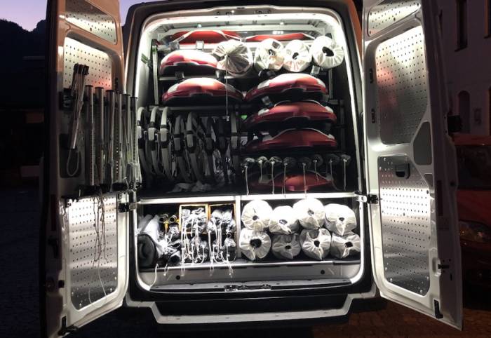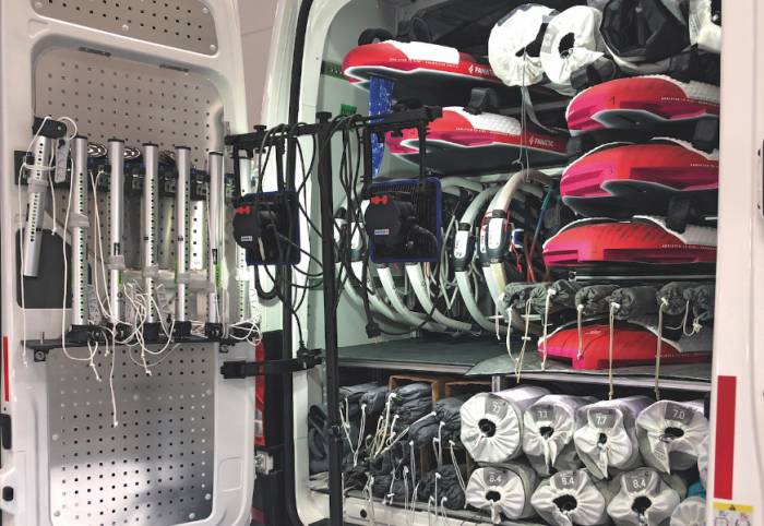 Schon bevor Marco Lang die Profis von bott Austria kennenlernte, war er extrem gut organisiert. In gemeinsamer Planung wurde der Transporter des Weltklasse-Windsurfers noch besser eingerichtet.