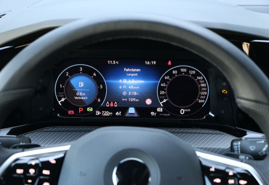 Apropos Maß, auch beim Kofferraumvolumen müssen sich die allermeisten E-Autos in einer vergleichbaren Preisklasse geschlagen geben. 611 Liter sind eine starke Ansage, erst recht, da auch auf der Rücksitzbank noch ordentlich Platz bleibt. Klappt man die Lehnen um, sind es gar bis zu 1.642 Liter Stauraum. Ein Blick ins Cockpit verrät, dass es VW mit der Digitalisierung mehr als ernst genommen hat. Statt Armaturen gibt's ein Display, das sich je nach Ausstattung individualisieren lässt und zum Beispiel auch die Navi-Karte anzeigen kann, statt eines massiven Automatikwählhebels gibt's nur noch einen kleinen Knubbel, der aber perfekt zu bedienen ist.