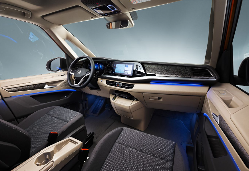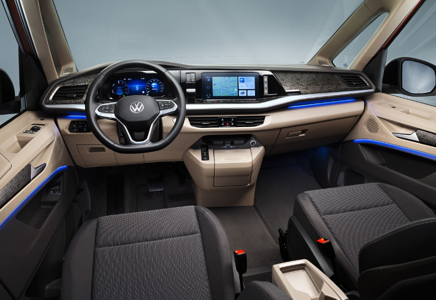 Die Passagiere werden zudem das optionale Panorama-Glasdach zu schätzen wissen, während sich Fahrer und Beifahrer über eine serienmäßige digitale Ausrüstung freuen können. Neben einem 10,25 Zoll großen digitalen Instrumentendisplay gibt es einen 10 Zoll großen Infotainment-Touchscreen in der Mitte. Und als ob das nicht schon genug wäre, bekommt der Fahrer auch noch ein Heads-up-Display - eine Premiere für ein Fahrzeug von Volkswagen Nutzfahrzeuge.