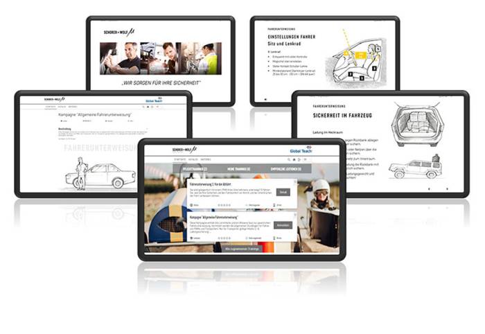 Eine Arbeitsgruppe aus möglichst unterschiedlichen Vertretern, von der Sicherheitsfachkraft über Vertriebsmitarbeitende bis zu prämierten E-Learning Experten erarbeitete den Lernstoff. In die Inhalte floss nicht zuletzt das Feedback aus bisherigen Präsenzveranstaltungen. Mit Global Teach, dem etablierten LMS (Learning Management System) von Swissteach, wird das WBT (Web Based Training) zum Thema „Fahrerunterweisung nach DGUV Vorschrift 70“ von den Adressaten selbst durchgeführt und kann gesammelt für die gewünschte Belegschaft freigeschaltet werden.