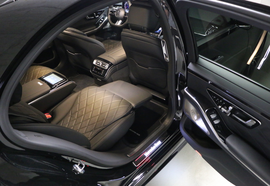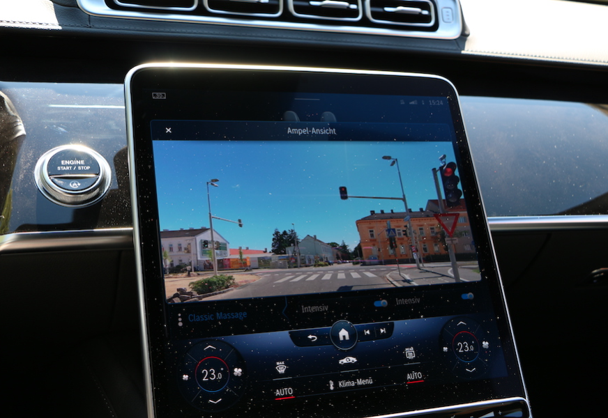 Der Innenraum versprüht Luxus pur, Hauptaugenmerk liegt klar auf dem Fond. Dort macht man es sich auf feinstem Leder gemütlich, legt sein Haupt in unfassbar kuschelige Kopfpolster und lässt sich dabei massieren. Das Leben kann echt schön sein, wenn man einen Chauffeur hat. Denn dann bekommt man auch nicht mit, welche Mercedes-untypischen Patzer man sich bei der Ergonomie rund um den Fahrer geleistet hat. Das beginnt beim Einsteigen. Die Griffmulde zum Zuziehen ist zu weit hinten angebracht. Was bei weiter geöffneter Tür zur Folge hat, dass man dort mitunter nicht mehr hinkommt. Beim Maybach-Modell und dem EQS gibt es optional elektrisch öffnende und schließende Komforttüren, bei der S-Klasse fehlt das Feature aber. Die in der Tür untergebrachte elektrische Sitzverstellung gibt es bei Mercedes seit Jahrzehnten, eigentlich ein Vorbild an Ergonomie. Auf den ersten Blick ist auch alles wie immer, bei der Bedienung stellt man aber fest, dass die einst beweglichen Symbole nun fix sind und per Touch bedient werden, was mehr schlecht als recht funktioniert. Die Touch-Seuche – die es auch bei anderen Herstellern immer öfter gibt – hat nun ebenfalls beim Lenkrad Einzug gehalten. Was zur Folge hat, dass etwa die Fläche für den Tempomaten zwei bis drei Mal gedrückt werden muss, ehe sie reagiert. Dass nun auch die Temperaturregelung in den Touchscreen gewandert ist, ist ebenfalls alles andere als eine Verbesserung der Ergonomie.