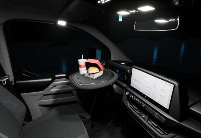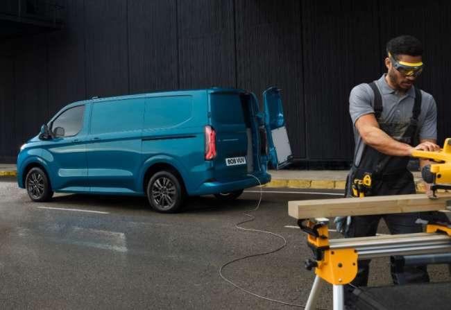 Der E-Transit Custom soll im täglichen Einsatz mit handfesten Vorteilen punkten. Dies beginnt bei der abgesenkten Lade- und Einstiegshöhe und reicht bis zu einem verbesserten Schutz gegen Diebstahl des Transportguts. Die Fahrerkabine dient als vielseitig nutzbarer Arbeitsplatz mit 5G-Konnektivität und pfiffigen Funktionen wie einem auf Wunsch lieferbaren Lenkrad, das sich zu einer ergonomischen Plattform für Laptops und Smartphones verwandeln lässt. Zudem können externe Geräte über eine Steckdose mit bis zu 2,3 kW mit Strom versorgt werden.