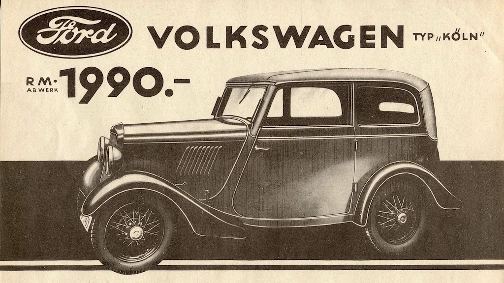 Und in Deutschland? Da lief der Wagen auch vom Band, aber nicht so ganz erfolgreich wie anderswo. Ein wenig Patriotismus könne nach uramerikanischer Denkweise da wohl nicht schaden, dachte man sich, womit der Y der erste Ford werden sollte den man nach einer deutschen Stadt benannte: Köln. Das hielt zwar so nur bis nach dem zweiten Weltkrieg, doch auch dann sollte die Nomenklatur nach Orten im Konzern beliebt bleiben, wenn man etwa an den Taunus denkt. Oder an die Vielzahl an Motoren, die von Kent über Essex bis zu Cologne, Cleveland und Windsor geographische Weltreisen unternahmen. Cool soweit. Aber so wirklich brachte das bei den Teutonen nicht den echten Durchbruch. Also ersonn das Marketing einen abermals neuen Namen, der ein Jahrhundertwurf werden sollte, aber für eine ganz andere Bude: Volkswagen.