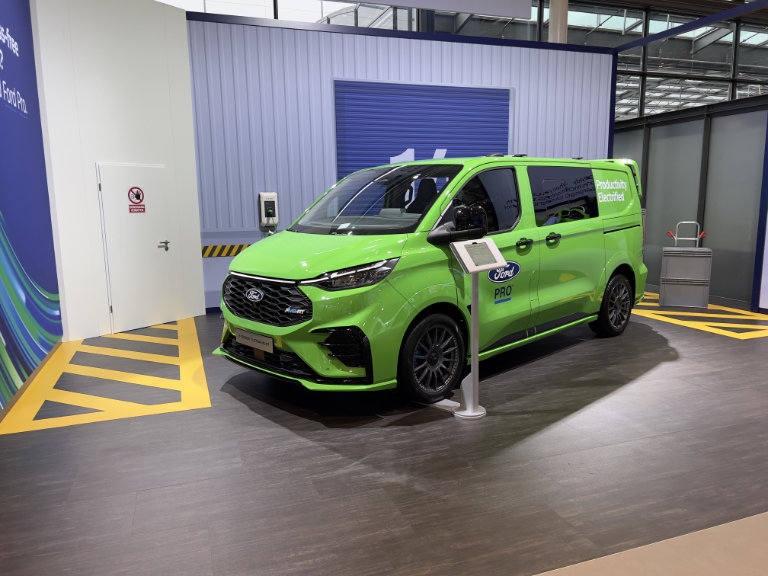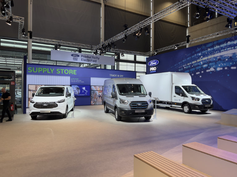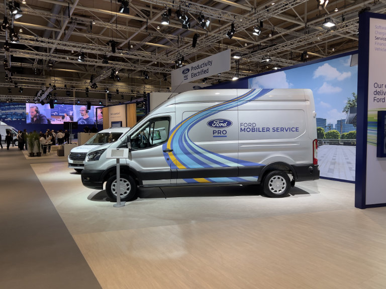 Erstmals zeigt Ford in Hannover das komplette neue Line-up der elektrischen Nutzfahrzeuge. Die reicht vom großen E-Transit über den E-Transit Custom bis hin zum E-Transit Courier, vom Transit Connect gibt es erstmals auch eine Plug-in-Hybrid-Version. Mit Ford Pro wird die Palette der vernetzten Dienstleistungen weiter ausgebaut, neu in der Telematik-Lösung ist das elektronische Fahrtenbuch.