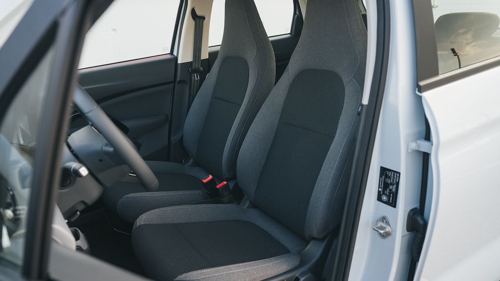 Die ersten Meter zeigen: Leistung ist ausreichend vorhanden, die Bedienung praktisch ausschließlich über den Touchscreen nicht mehr ganz up to date und Fahrwerk sowie Lenkung agieren unauffällig und gefällig, reichen für die gebotene Power allemal. Bewusst verzichtete man auf eine allzu harte Abstimmung, was den Zuständen unserer Straßen ohnehin entgegenkommt. Was eher ein Kritikpunkt ist: Vor allem im Innenraum bemerkt man die preisbewusste Bauweise: Robustes Plastik dominiert Armaturenbrett und Co, die Sitze könnten ruhig besser gepolstert und stärker konturiert sein, und die geringe Innenbreite zeigt, dass die grundsätzliche Konstruktion des T03 schon ein paar Jahre auf dem Buckel hat. Immerhin: Die Verarbeitung des bei Fiat in Polen gefertigten T03 passt voll und ganz, und da die Scheinwerfer vom Fiat 600 stammen, wirkt der E-Zwerg nicht nur vertraut, sondern auch durchaus europäisch, was für viele dann doch ein die nötigen Sympathiepunkte einbringen kann.