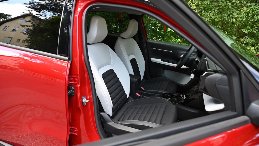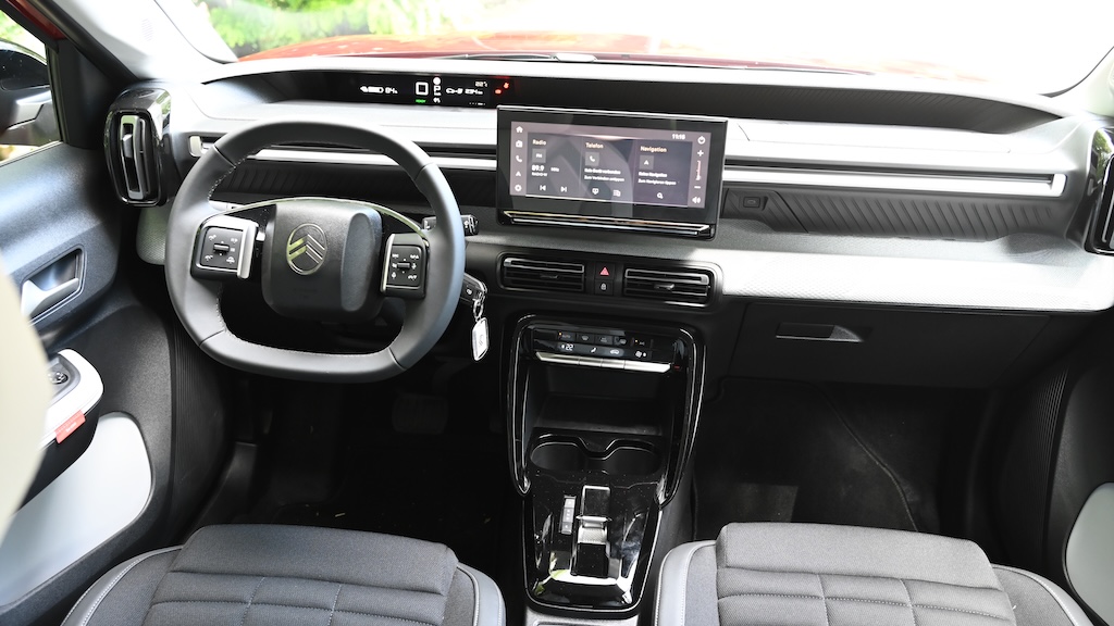 Wie seine Konzernbrüder, tritt der kleine Franzose nun auch mit zwei Batteriegrößen in Erscheinung, die LFP-Batteriechemie sorgt für ein ruhiges Rohstoffgewissen bei der elektrischen Fortbewegung und fiel im sommerlichen Test nicht negativ auf. Im Cockpit findet sich der Fahrer schnell zurecht, die übersichtliche, superscharfe Infoeinheit über dem (zu) tief sitzenden, (zu) kleinen Lenkrad (mehr ein knuffig wirkendes Viereck mit abgerundeten Ecken) ist ein echtes Highlight. Auch der zentrale Bildschirm ist klein, aber scharf und flüssig bedienbar. Als eher schwierig erwies sich im Test – einmal mehr bei einem Fahrzeug des Stellantis-Konzerns – die Koppelung mit dem Smartphone, und wenn die App dann endlich läuft und Infos mit dem Wagen austauscht, ist man über den etwas mageren Möglichkeitenumfang doch erstaunt. Zwar ließ sich per App der Ladestand überwachen, nicht jedoch eine Vorklimatisierung auslösen, was eigentlich Standard bei E-Autos ist. Erwähnenswert: Das Wechseln zwischen verschiedenen gekoppelten Handys funktionierte im Test bemerkenswert flüssig.