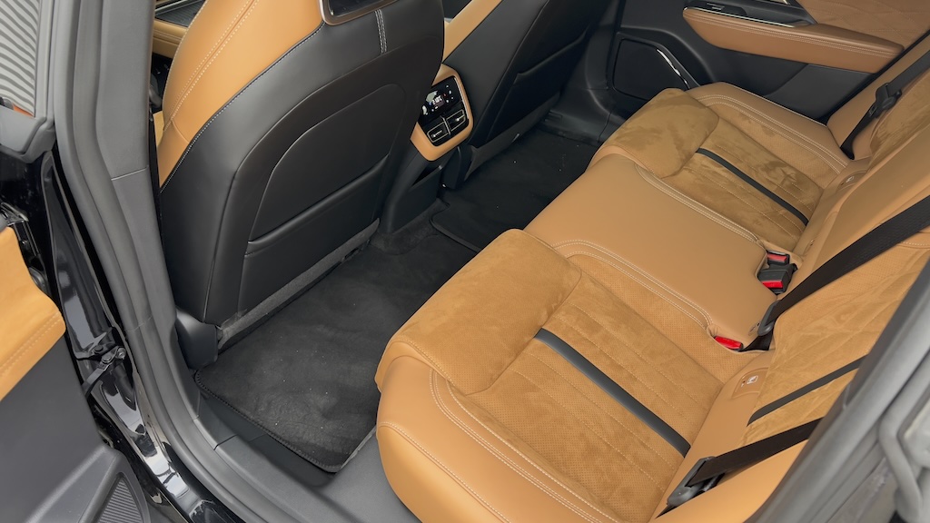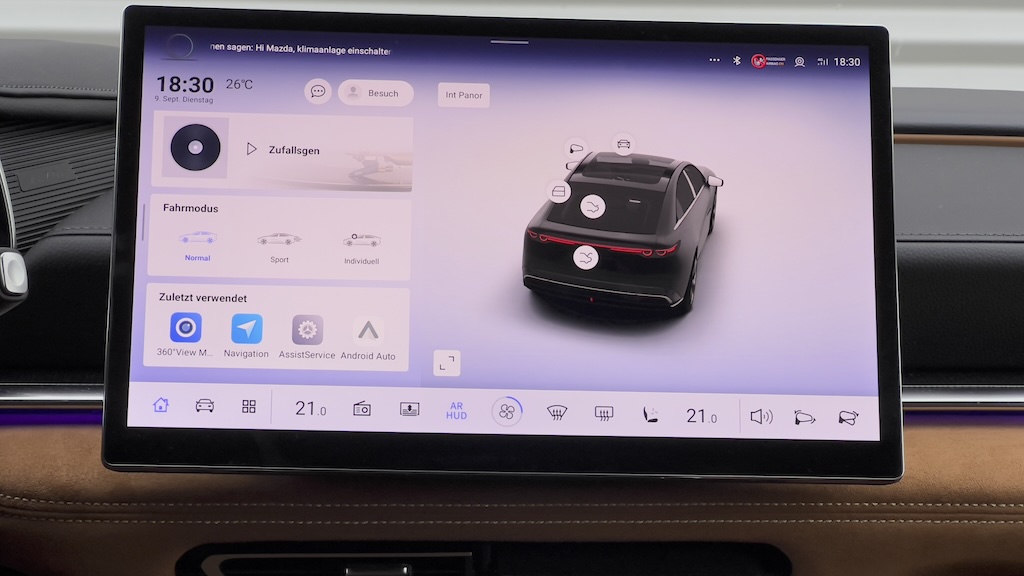 Kehrseite der Medaille ist die Markenidentität, die dadurch teilweise auf der Strecke bleibt. Und das spürt man vor allem bei der Bedienung. Die ist bei CX-60 & Co nämlich vorbildlich einfach und mit dem Drehregler ergonomisch gut gelöst. Der Mazda6e ist da von einem anderen Schlag, das Meiste wird am Screen getouched mit dutzenden Einstellmöglichkeiten in ebenso vielen Menüs. Kein leichter Umstieg für den klassischen Mazda-Kunden, der eher nicht zur Gen Z zählen dürfte. Andererseits gilt das auch für etliche andere neue E-Autos, vorwiegend aber für chinesische Hersteller, die offensichtlich Teile und Software gemeinsam entwickeln, den Parallelen nach zu urteilen. Das betrifft auch die Assistenzsysteme, deren Feinabstimmung im Mazda durchaus ein OTA-Update vertragen würde, der Leapmotor (Seite 59) hat das vorgemacht. In Sachen Design ist der elektrische 6er sehr gelungen, vor allem das Interieur sticht dabei heraus. In unserem Testwagen waren nicht nur die Sitze standardmäßig in Alcantara(-ähnlichen) Stoff gehüllt, auch am Armaturenbrett und an den Türen fand man das haptisch wie optisch ansprechende Material. Das Platzangebot im Fond ist üppig, das Kofferraumvolumen beträgt 337 bis 1.074 Liter plus 72 Liter Frunk.