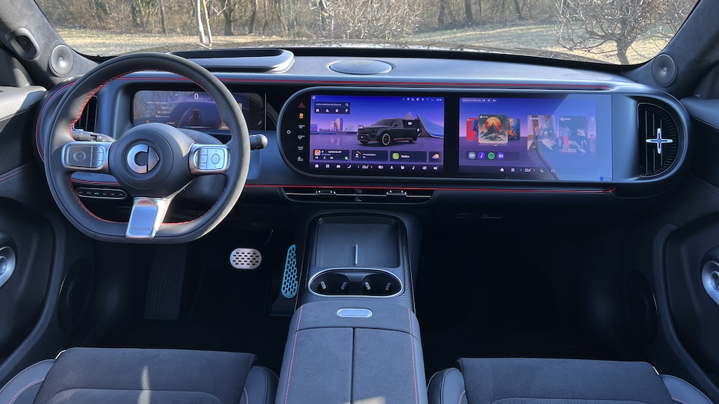 Als neuer SUV im D-Segment Fuß zu fassen, ist kein leichtes Unterfangen. Das ist Smart bewusst und tritt direkt mit Superlativen auf. Denn der #5 in der Brabus Version hat von allem ein bisschen mehr. Ein bisschen viel mehr Leistung zum Beispiel, denn er bringt 646 PS mit und sprintet so im „Raketenstart“ in nur 3,8 Sekunden auf 100 km/h. Im Alltag findet dieses Feature natürlich kaum Anwendung. Was jedoch ein Merkmal ist, was ihn hervorhebt und tatsächlich einen großen Unterschied für den Nutzer im täglichen Betrieb macht, ist die Ladeleistung. Die kann nämlich mehr als die meisten Schnellladestationen: 400 Kilowatt. Bei der Power kann ein Ladestopp leicht den Schrecken verlieren.