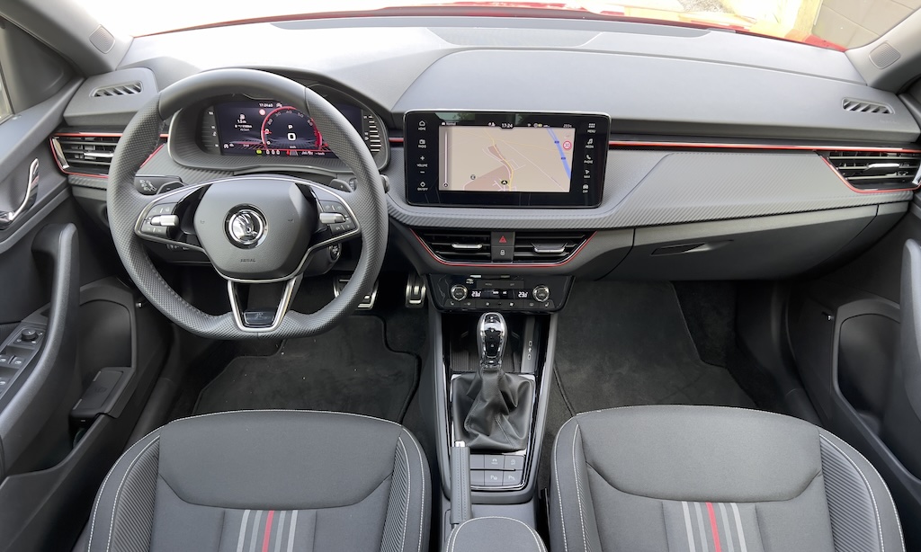 Der erwähnte Motor zeigt sich spritzig und harmoniert gut mit dem DSG-Getriebe, die Kombination zeigt sich mehr als ausreichend, unser Testverbrauch von 6,5 Liter ist zwar nicht rekordverdächtig, aber O. K. Mehr als okay ist die Ausstattung. Ob Klimaautomatik, Sportsitze, Navigationssystem mit Apple CarPlay und Android Auto, Multifunktionslenkrad oder adaptiver Tempomat, hier fehlt es an nichts. Die Ergonomie ist wirklich gut, auch die bei Neuwagen vorgeschriebene, aber extrem nervige Piepserei bei Überschreitung der erkannten Geschwindigkeit um ein km/h sowie der bei Škoda traditionell etwas übereifrige Spurhalteassistent lassen sich mit zwei Klicks übers Multifunktionslenkrad deaktivieren. Das Resümee? Komplett ausgestatteter Kompakter mit viel Platz zum dennoch hohen Tarif.