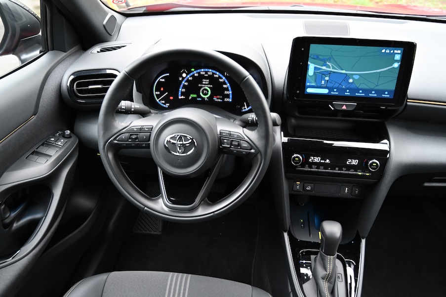 Was das Platzangebot betrifft, sind allerdings keine Illusionen angebracht. Die Sitze sind eher kurz, ab der zweiten Reihe werden Langbeinigen Kompromisse abgefordert, das Gepäckabteil will vor der großen Reise ebenfalls durchdacht beladen werden. Pluspunkte sammelt der Yaris im Cockpit, wo ein guter Mix aus modernem Infotainment, das bis zum Head-up-Display reicht, und guten alten Knopferln die intuitive Bedienbarkeit sicherstellt. Wer mit überdurchschnittlich vielen persönlichen Gegenständen, Kaffeebechern, Schokoriegeln etc. reist, wird sich mehr Ablageflächen wünschen.