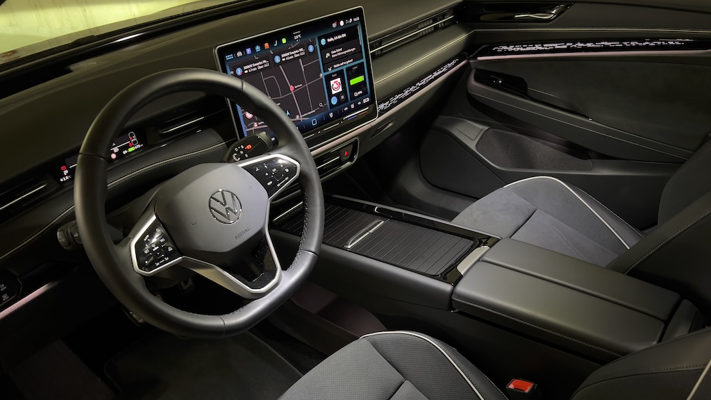 Mit einer Länge von knapp fünf Metern darf man auch hohe Ansprüche ans Raumgefühl im Innenraum stellen, man wird nicht enttäuscht. Selbst hinter großen Fahrern ist im Fond jede Menge Beinfreiheit, der Kofferraum schluckt zwischen 605 und 1.714 Liter, auch das nicht viel kleiner als im Passat. Zwar wurde die Software des Touchscreens mittlerweile deutlich verbessert und auch bei der Menülogik gibt es nichts zu meckern, die eigenwillige ID-Bedienphilosophie muss aber auch der Siebener mittragen. Will heißen, zwei Fensterheberschalter für vier Fenster – eine Zusatztaste schaltet zwischen vorn und hinten um –, zudem die nicht gut zu bedienenden Touch-Tasten am Lenkrad, die VW bei den jüngsten Modellen – darunter auch der Passat – schon wieder entsorgt hat.
