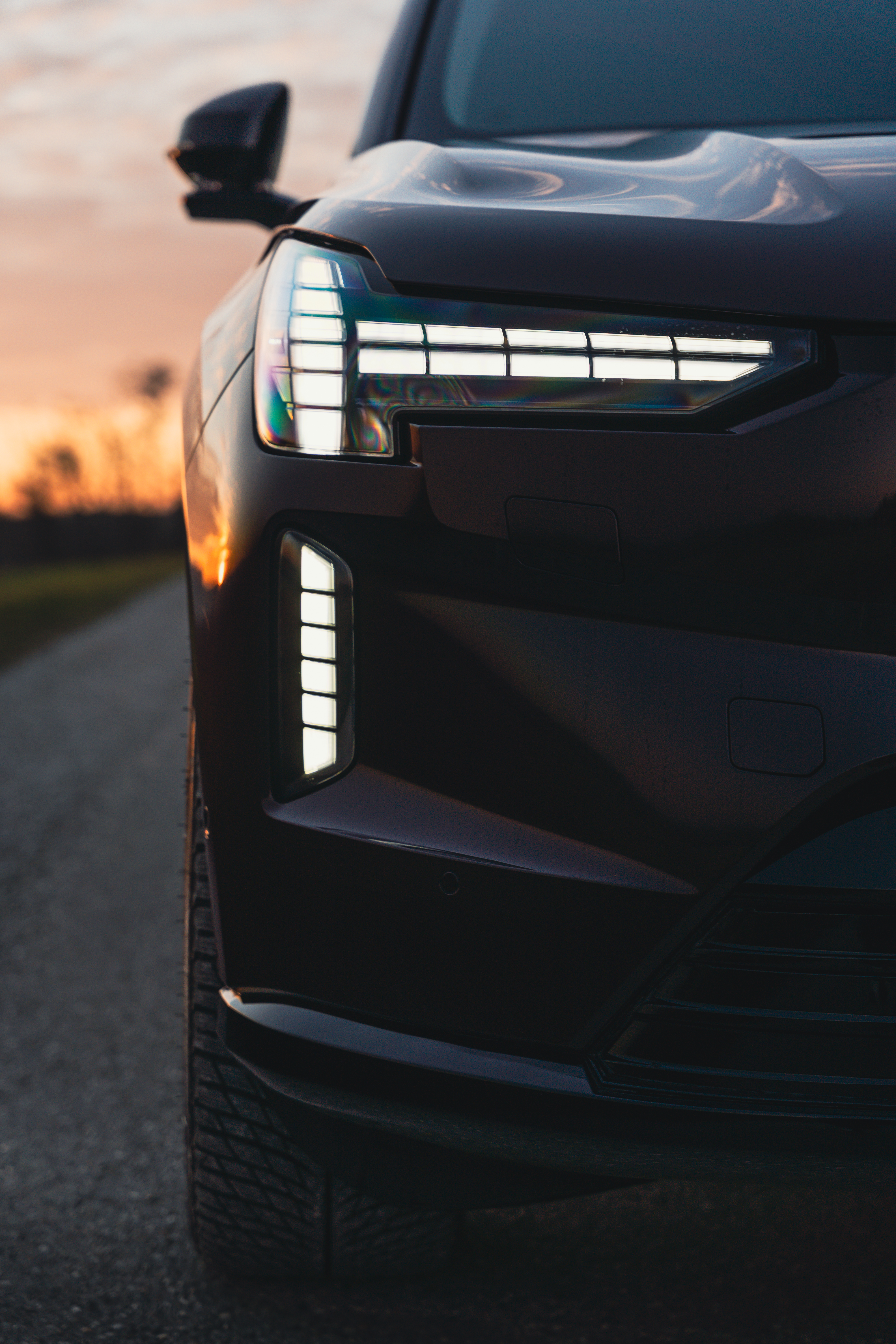 Der orientiert sich in Sachen Design an der aktuellen Volvo-Formensprache, markant sind die Tagfahrlichter, die „Thors Hammer“ stilisieren. Auch wenn es auf den Bildern nicht ganz so wirken mag, mit einer Länge von 5,04 Metern, ist der EX90 ein ordentliches Stück Auto. Kein Wunder, dass der Innenraum ebenfalls großzügig ausfällt und Sitzkonfigurationen mit fünf, sechs (2/2/2) oder sogar sieben (2/3/2) Plätzen erlaubt. Das Interieur ist schwedisch sachlich eingerichtet, allzu viele haptische Tasten gibt es nicht mehr, bei Einstellungen für Lenkrad, Sitz und Außenspiegeln brauchts den großen Touchscreen. Ein echter Segen ist das Geräuschniveau an Bord, in kaum einem anderen Auto ist es zumindest subjektiv so leise.