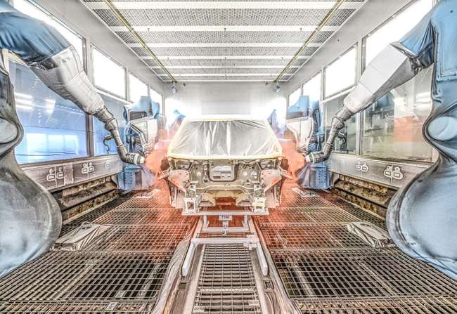 Ob der geringen Übeschneidungen der drei Modelle eine logistisch ganz besondere Herausforderung. Beeindruckend ist auch Automatisierungsgrad von über 90 Prozent beim Elektro-Bulli, beim T6.1 lag man im Vergleich bei erst 70 Prozent. 900 bis 1.000 Autos schafft das Werk im Vollbetrieb, aktuell verlassen rund 750 Fahrzeuge (100 bis 150 ID. Buzz, 100 T7 und der Rest T6.1) täglich das Werk, vom Presswerk bis zum fertigen Auto vergehen dabei nur vier bis sieben Tage.