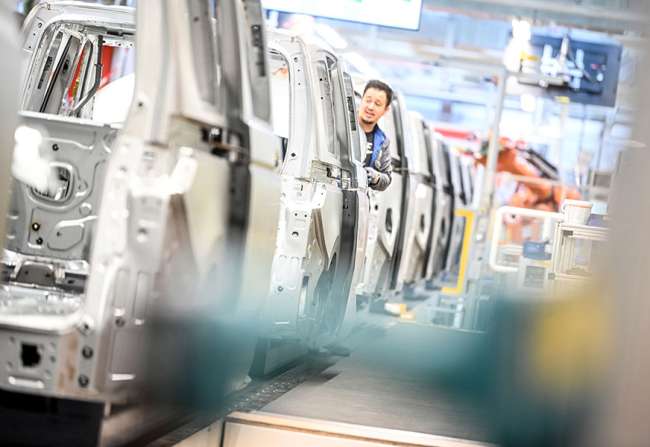 Drei höchst unterschiedliche Autos auf einer Produktionslinie
