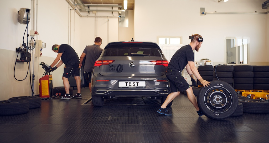 So griffen der ÖAMTC und seine Partnerclubs zu Reifen der Dimension 205/55 R16, die als eine der meistverkauften Größen gilt. Bereits beim Bremsen auf trockenem Asphalt zeichnete sich ein spannendes Bild ab: Um von 100 km/h mittels Vollbremsung zum Stillstand zu gelangen, braucht der beste Reifen in dieser Disziplin (Michelin Cross Climate 2) 39,5 Meter – wohingegen der Schwächste (Uniroyal AllSeason Expert 2) erst 7,1 Meter später zum Stehen kommt. Als das Testfahrzeug mit dem Michelin also bereits stillstand, fuhr es mit dem Uniroyal noch mit knapp 40 km/h weiter.