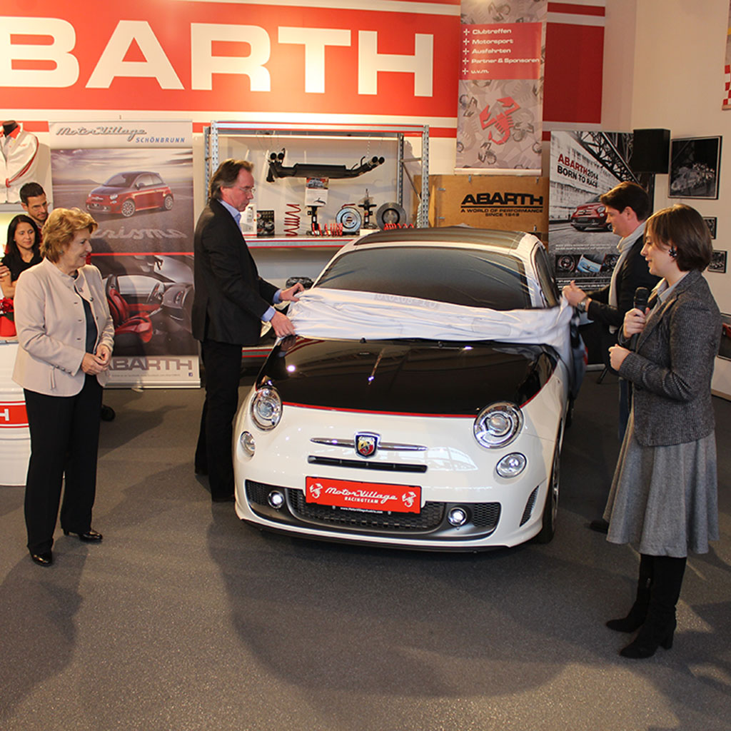 Im Abarth-Schauraum des Autohauses Schönbrunn fanden sich neben Anneliese Abarth auch Rennlegende Dieter Quester - der einst für Abarth Rennen fuhr - ebenso ein wie Komm.-Rat Franz R. Steinbacher, heute Sachverständiger für historische Automobile, damals als Mechaniker für Abarth tätig - ein.