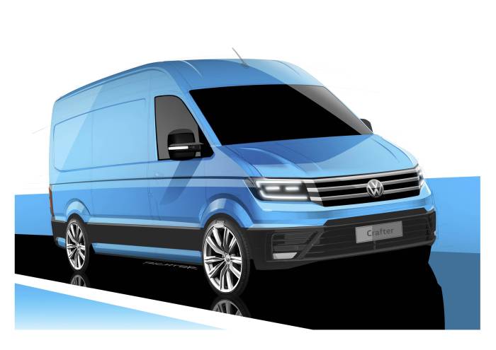 Einen ersten Blick auf den neuen Crafter lässt VW Nutzfahrzeuge mit der Veröffentlichung von Skizzen zu. Dieser wird am Herbst verfügbar sein.