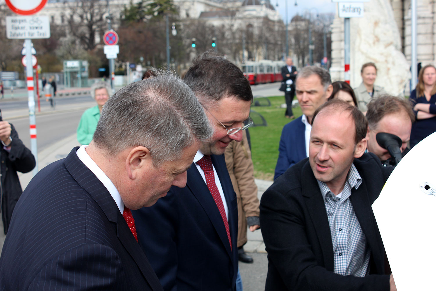 Bei der Pressekonferenz war auch Rallye-Ass Manfred Stohl mit dabei, der im ersten Elektro-Rallye-Auto nicht nur beide Minister auf eine Spritztour rund ums Burgtheater mitnahm, sondern auch seine Leidenschaft zum Thema unterstrich.