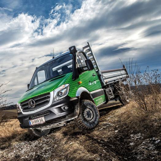Gemeinsam mit den österreichischen Firmen Oberaigner und Fischerleitner veredelt Mercedes-Benz den Sprinter 4x4 zu einem Offroad-Lastesel fürs gröbste Gelände. Wir konnten einen Dreiseitenkipper exklusiv testen – und waren nachhaltig beeindruckt.