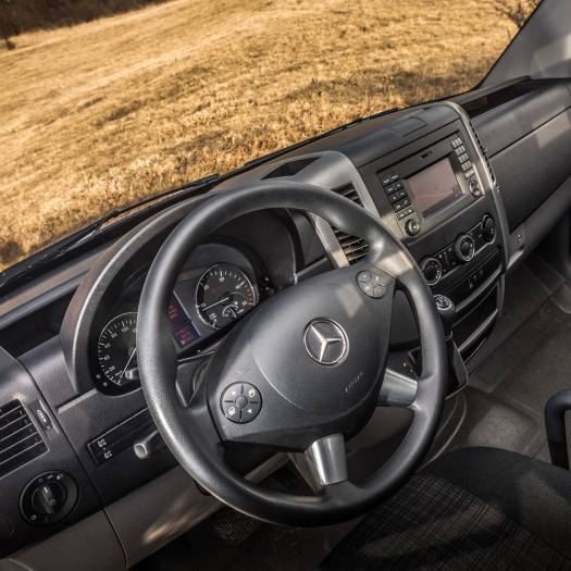 Auch preislich bleibt alles im vernünftigen Rahmen: So kostet etwa der Sprinter 4x4 314 CDI (Fahrgestell) netto 43.032 Euro, die Bus-Variante knapp 50.600 Euro. Unser mit Klimaanlage, Navigationssystem und Xenon-Scheinwerfern ausgestatteter Dreiseitenkipper kommt auf 65.053 Euro netto – was auch nicht die Welt ist.