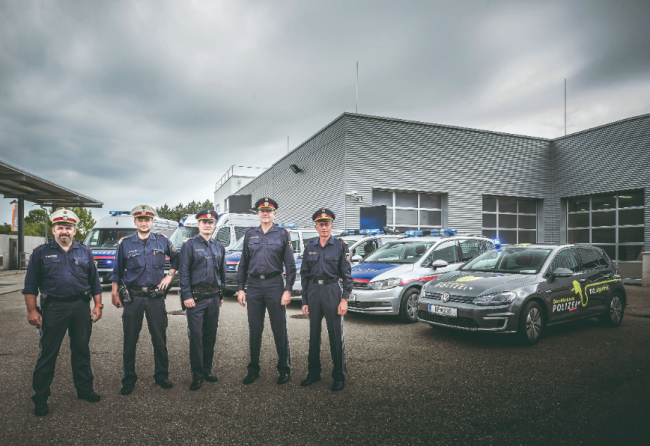 Der e-Golf wird derzeit rein aus technischer Sicht getestet, denn „dass man mit einem E-Auto Botendienste machen kann, wissen wir, aber derzeit tun wir uns schwer, ein E-Car zu finden, das unseren polizeilichen Anforderungen entspricht“, berichtet Skorsch. Und stellt auch infrage, ob wirklich alle Fragen rund um die E-Mobilität mit Ende der einjährigen Studiendauer beantwortet sein werden, da seitens der Polizei wirklich die Gesamtthematik beleuchtet werden muss. Skorsch: „Das Thema ist schon sehr umfassend, denken Sie nur daran, wenn ich eine große Dienststelle mit etwa 100 E-Autos habe, die Batterien mit 100 Kilowatt haben werden, und die sollen über Nacht alle aufgeladen werden! Selbst bei fünf Fahrzeugen wäre das für einen durchschnittlichen Mittelspannungstrafo bereits ein Problem, das heißt, man bräuchte eine eigene Ladeinfrastruktur … und auch wenn Ökologie etwas kosten darf und soll, muss sie leistbar und finanzierbar sein.“ Bis auf Weiteres werden also vorwiegend tüchtige, leistungs- und reichweitenstarke, verlässliche und moderne Polizeifahrzeuge mit Verbrennungsmotor als unsere Freunde und Helfer auf Österreichs Straßen unterwegs sein. •