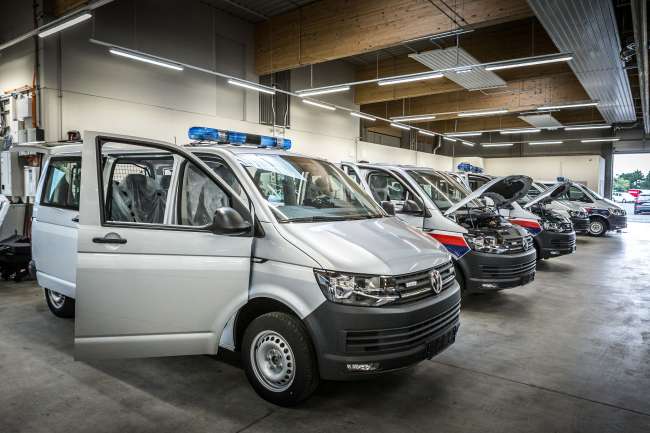 Standardmarken im Polizei-Fuhrpark sind VW, Skoda, Audi und Seat, allerdings auch einige andere Marken, die nicht genannt werden und insbesondere für verdeckte Ermittlungen oder auch als Zivilstreifenwagen eingesetzt werden. Klassische Mengenfahrzeuge sind VW Touran 2WD beziehungsweise Skoda Octavia Combi 4x4, wo aufgrund des Geländes Allrad notwendig ist. Diese Modelle steuern auch einen Großteil der jährlichen Kilometer – im Jahr 2016 waren es 134.100.000! – bei. Damit aus einem „gemeinen“ Touran oder Skoda Octavia ein Polizeiauto wird, braucht es als Mindestadaption Blaulicht, Funk, Ladegutsicherung und die Folierung außen, bei den Zivilstreifen sind es Funk und die Blaulicht-Magnetleuchte.