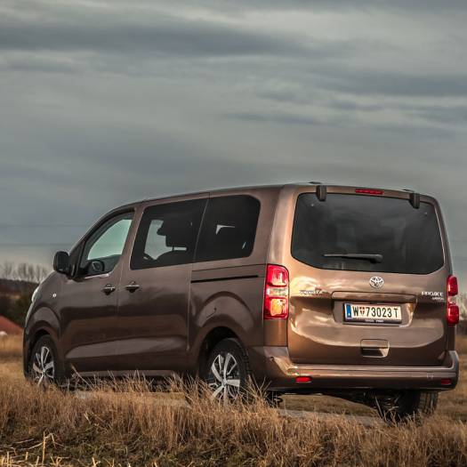 Anfangs von manchem Fahrer etwas belächelt, hat sich das auf einer separat aufklappenden Scheibe befindliche Head-up-Display schnell großer Beliebtheit erfreut. Nicht nur die aktuelle Geschwindigkeit ist so perfekt im Blickfeld, auch Navigationshinweise werden dort eingeblendet. Die Bedienung des mittigen Touchscreens erfolgt einfach und genau, praktisch ist die auf den jeweiligen Schlüssel programmierbare, individuelle Einstellung, die etwa die Radiosender oder andere Fahrzeugparameter umfasst und das bei mehreren Fahrern lästige Einstellprozedere vor Fahrtantritt vermeidet. Da wäre übrigens das Tüpfelchen auf dem i, wenn der Fahrersitz nicht nur elektrisch verstellbar -serienmäßig bei unserer Ausstattung -, sondern auch mit einer Memory-Funktion versehen wäre. Für Fahrer und Passagiere gleichermaßen angenehm sind die elektrischen Schiebetüren auf Fahrer-und Beifahrerseite. Diese lassen sich nicht nur auf Knopfdruck im Fond und beim Fahrer bedienen, sondern auch mit dem Fahrzeugschlüssel aus der Entfernung und mittels Fußschwenk hinter den Hinterrädern. Dank des praktischen, schlüssellosen Zugangs-und Startsystems reicht auch ein Zug an der versperrten Türschnalle aus, um die Schiebetür nach hinten gleiten zu lassen. Ohne elektrisches Öffnen und Schließen muss allerdings die Heckklappe auskommen, aber das ist beim Mitbewerb im Segment nicht anders. Dahinter verbirgt sich -je nach Sitzkonfiguration -ein riesiges Gepäckabteil, das zwischen 603 und 2.381 Liter schluckt. Womit der Toyota Proace Verso dank ausbaubarer Sitze auch für größere Transportaufgaben prädestiniert ist.