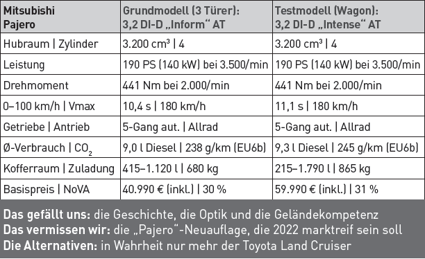Der Mitsubishi Pajero ist ein Dinosaurier. Seit 36 Jahren läuft er vom Band und hat sich dank zwölf Rallye-(Paris)-Dakar-Siegen, sieben davon in Folge (!), bei 26 Antritten den Ruf als unverwüstliches Allradfahrzeug aufgebaut. Und eine auf die gesamte Erdkugel verstreute treue Fangemeinde um sich geschart. Doch das Leben ist kein Wunschkonzert und leiderauch keine permanente Rallye, weshalb die strengen EU-Zulassungsbestimmungen nach dem Land Rover Defender auch den Pajero mit Jahresende das Karriereende aufzwingen. Anlass genug, sich nochmal mit dem liebgewonnen Japaner auseinanderzusetzen.