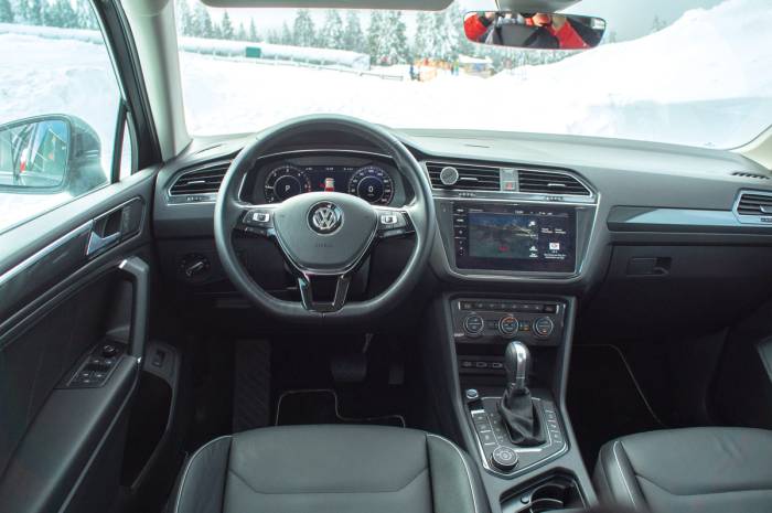 Beim Cockpit unterscheidet sich der lange nicht vom kurzen Tiguan, je tiefer man in den Geldbeutel greift, desto komfortabler und hochwertiger wird es auch hier. Besonders beim Infotainment hat VW hier die Nase vorn, das große Touchscreen-Navi weiß ebenso zu gefallen wie das Active-Info-Display. Statt klassischer Zeiger gibt"s nur noch einen großen Bildschirm, der zigfache Darstellungsmöglichkeiten ermöglicht. Besonders cool ist es, die Karte des Navigationssystems hinterm Lenkrad einzublenden, wenngleich einige Fahrer das dann doch zu unruhig fanden und lieber auf großen Tacho und Drehzahlmesser setzten. Die Geschwindigkeit lässt sich optional auch auf dem Head-up-Display ablesen, das auf eine separat aufklappende Plexiglasscheibe projiziert.